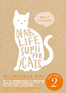 オメガ3脂肪酸源である亜麻仁油・魚油、オメガ9脂肪酸源であるひまわり油・紅花油をバランスよく配合し、健康な体や皮膚、艶のある毛並みを保ちます。